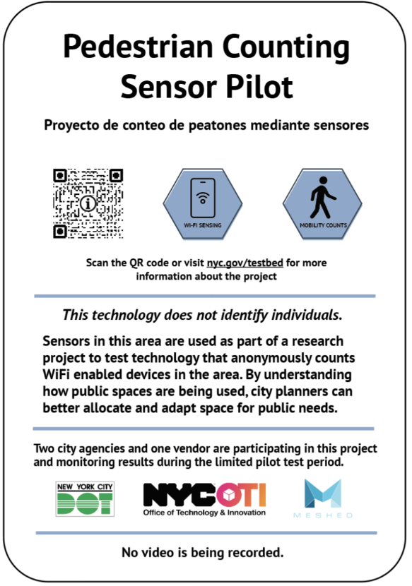 Signage: The below signage communicates to the public that the pilot is purely research-based, and no personal identifying information will be collected.